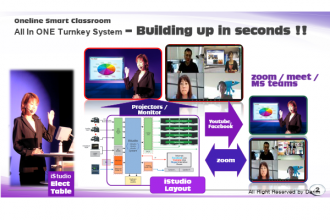 iStudio is a 3D studio broadcasting system that can be used in various fields. Easy-to-use turnkey hardware / software packages enable broadcasting and presentations in a variety of venues, including educational institutions, conference rooms, Internet classrooms, in-house training and conferences. Choose one of the various 3D studios in iStudio and change your wall / floor / logo to make your own 3D studio. It also feels like it is in 3D virtual space, so there is no need for post-production.